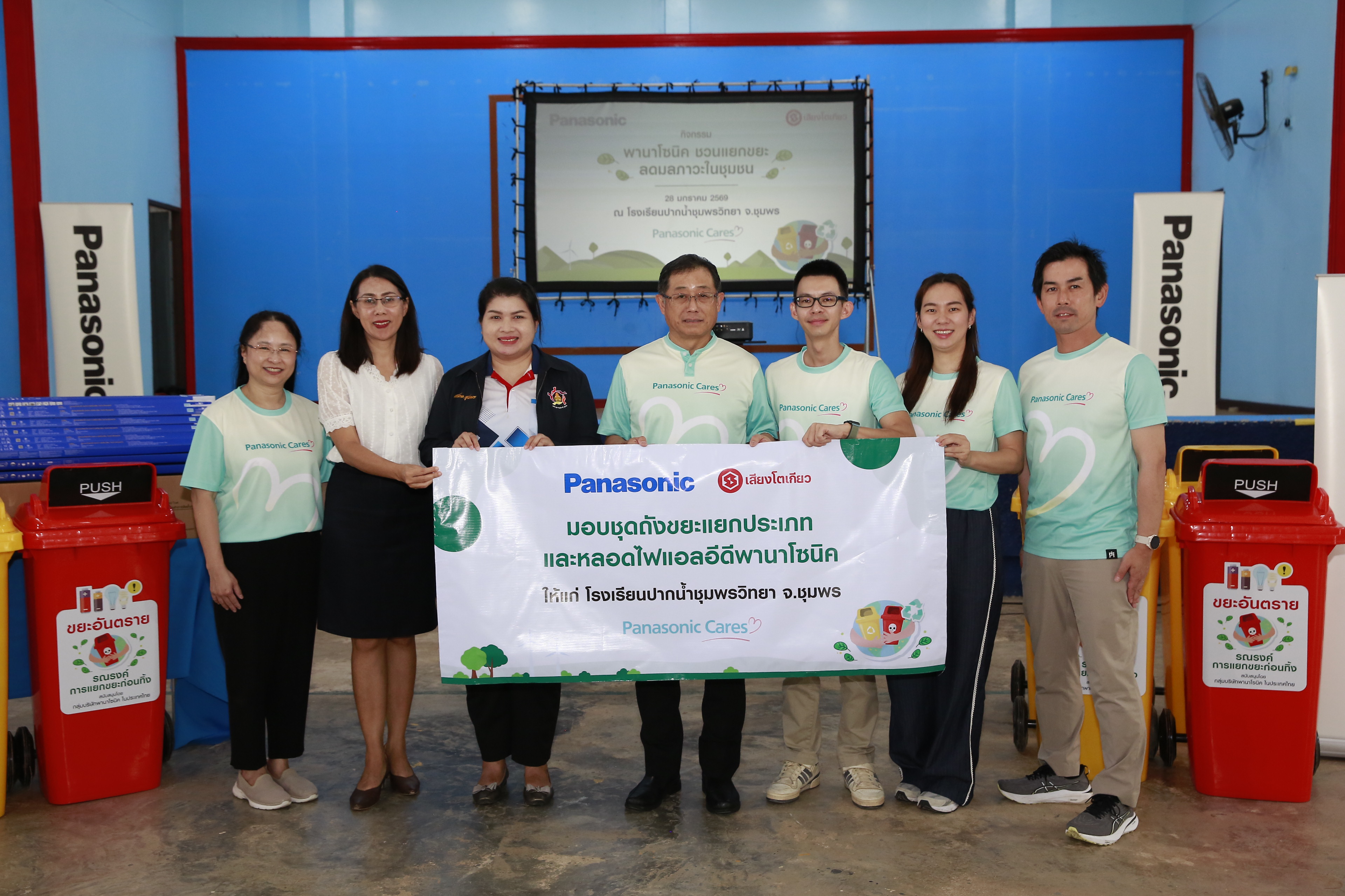 Mr. Hidekazu Ito, CEO of Panasonic Group in Thailand, and Mr. Ekkapong Techawongthaworn, Managing Director, Seangtokyo Co., Ltd., organized the activity “Together with Panasonic: Separate Waste for a Cleaner Community.”This initiative is part of the Panasonic Cares project, The activity included donations of Waste classification bins and Panasonic LED light bulbs. The handover ceremony was represented by Ms. Paweena Nakhokwik, Director of Paknamchumphonwittaya School, and was honored by the presence of Ms. Pawanrat Techawongthaworn, Managing Director, Seangtokyo Co., Ltd. Mrs. Busakorn Tangsangasaksri, Director of Managing Director Office, Panasonic Solutions (Thailand) Co., Ltd,. along with Mr. Tatsuya Shimizu, Deputy Director of Panasonic Solutions (Thailand) Co., Ltd. The Event was held at Paknamchumphonwittaya School in Chumphon Province.